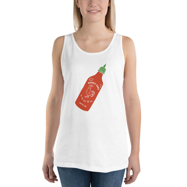 This flip of the classic Sriracha logo is a nod to a noodles best friend. A classic, all-purpose unisex tank. A timeless classic intended for anyone looking for great quality and softness.