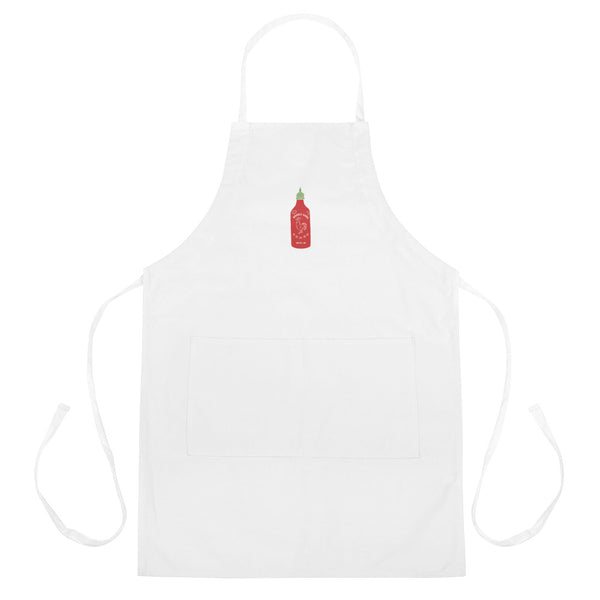 This flip of the classic Sriracha logo is a nod to a noodles best friend. Thanks to this embroidered apron you don't have to worry about keeping your clothes clean when cooking! The neck loop and long ties, two front pockets, and intricate embroidery in front all come together in an eye-catching and comfy accessory that'll make you long for more time in the kitchen.